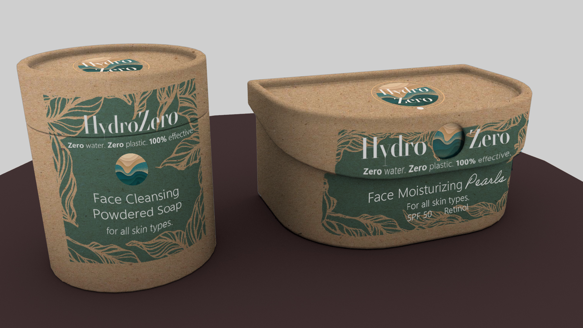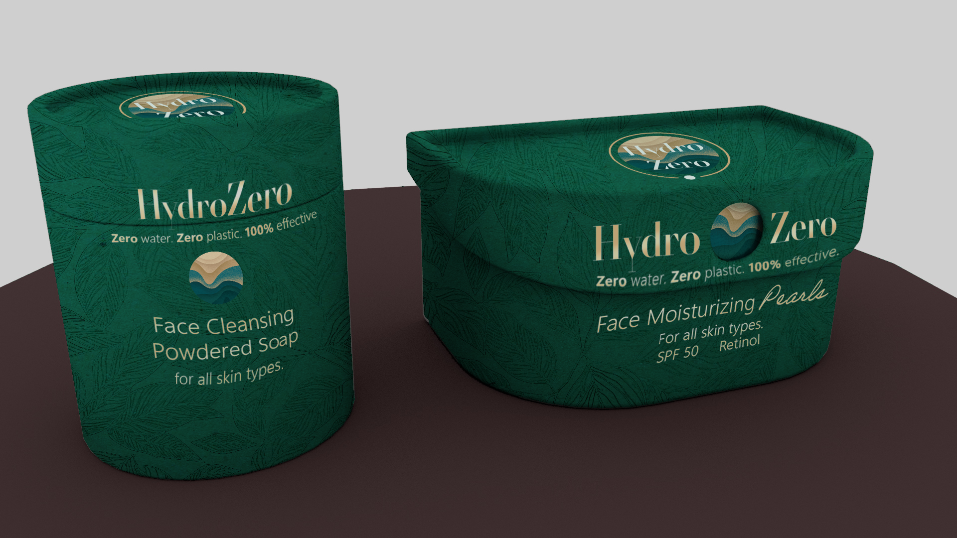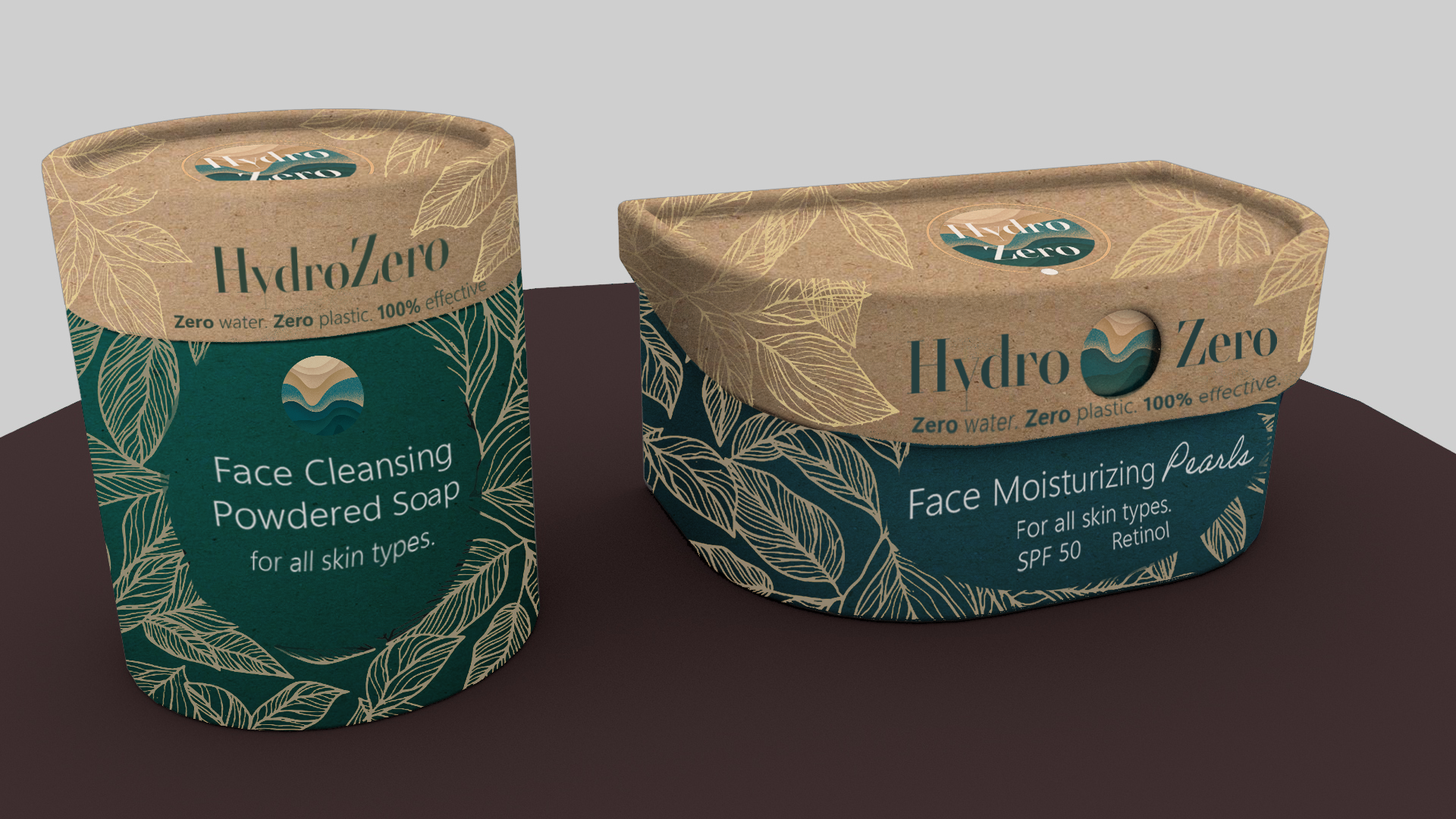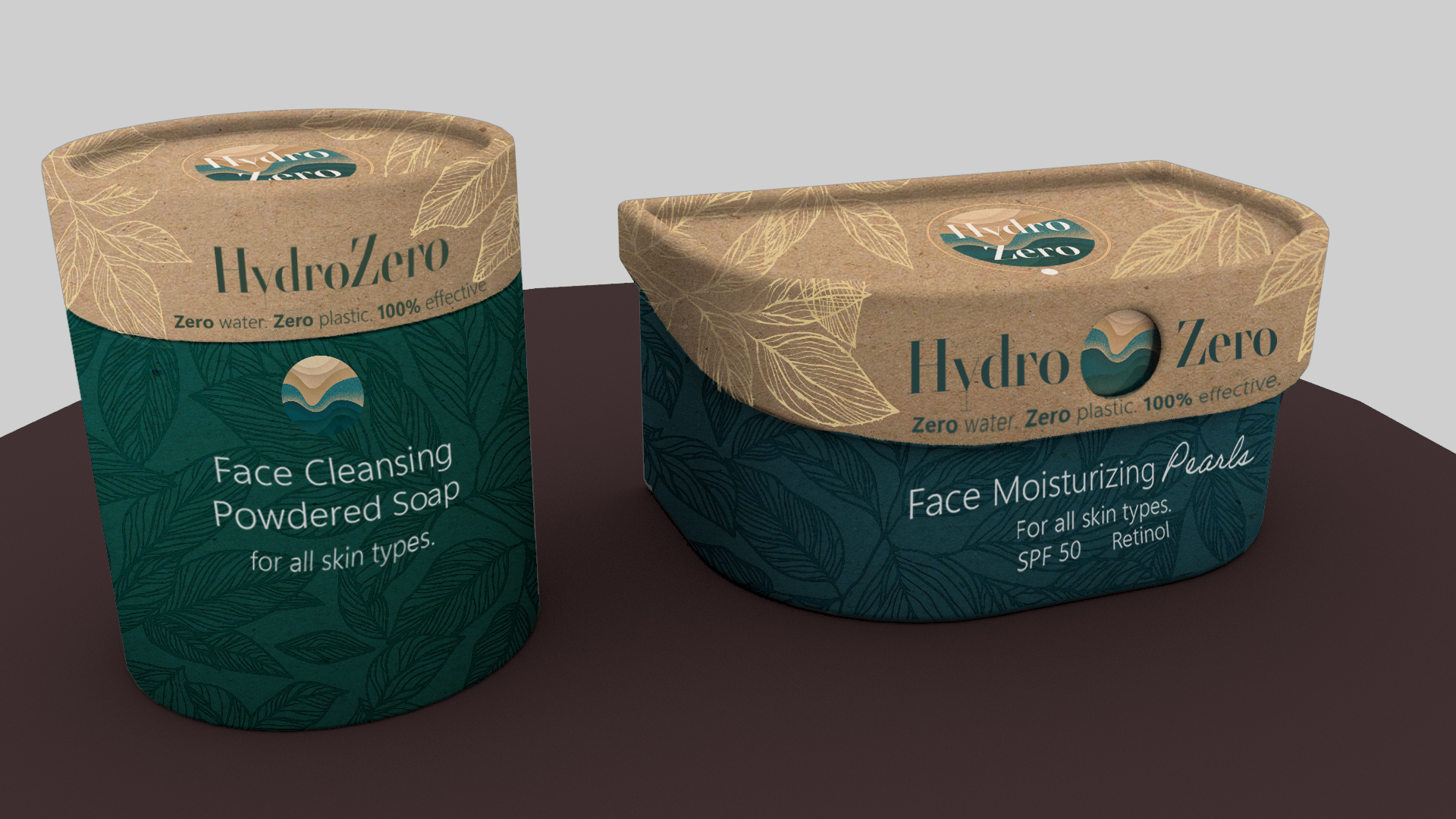 Discovering that “waterless” skin care products were becoming trendy, I had the idea of using waterless, dissolvable “pearls” for a face moisturizer. This way, a 100% plasticless packaging could be used, as well as having the bonus effect of a long lasting, concentrating product. For this reason I chose the name “HydroZero”.
