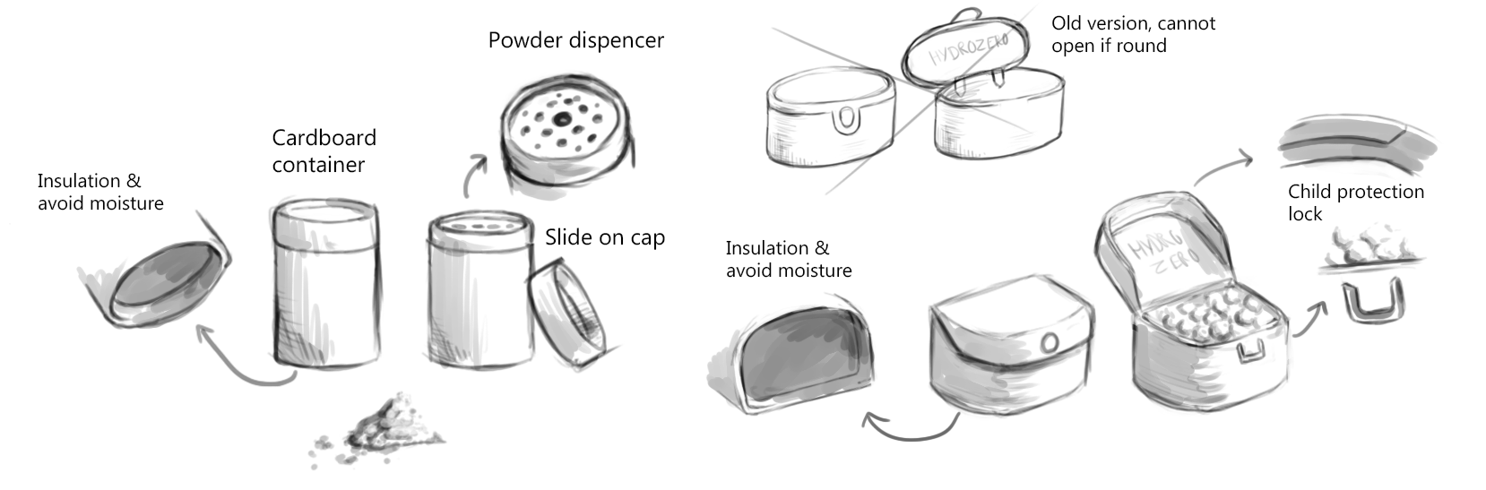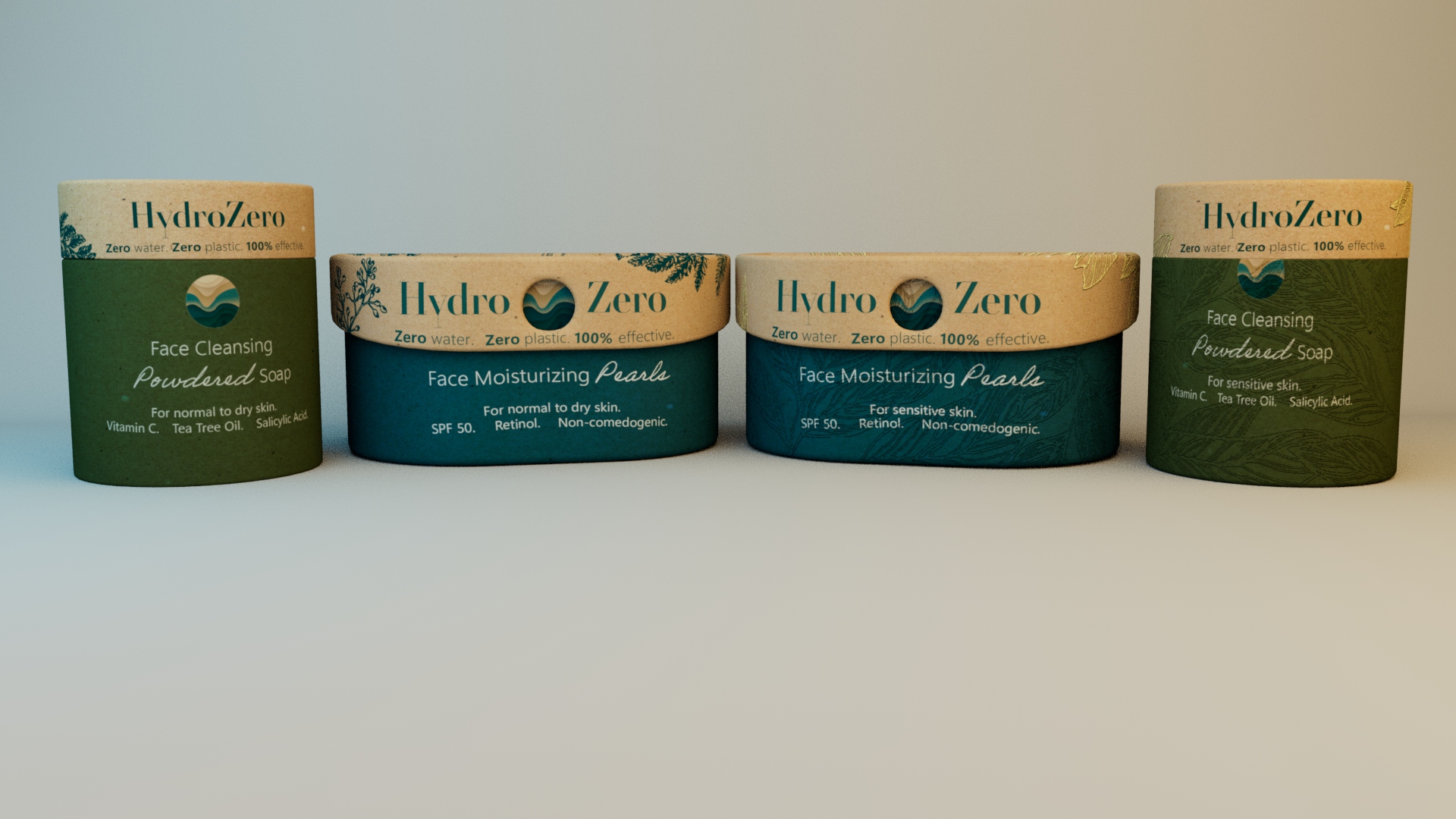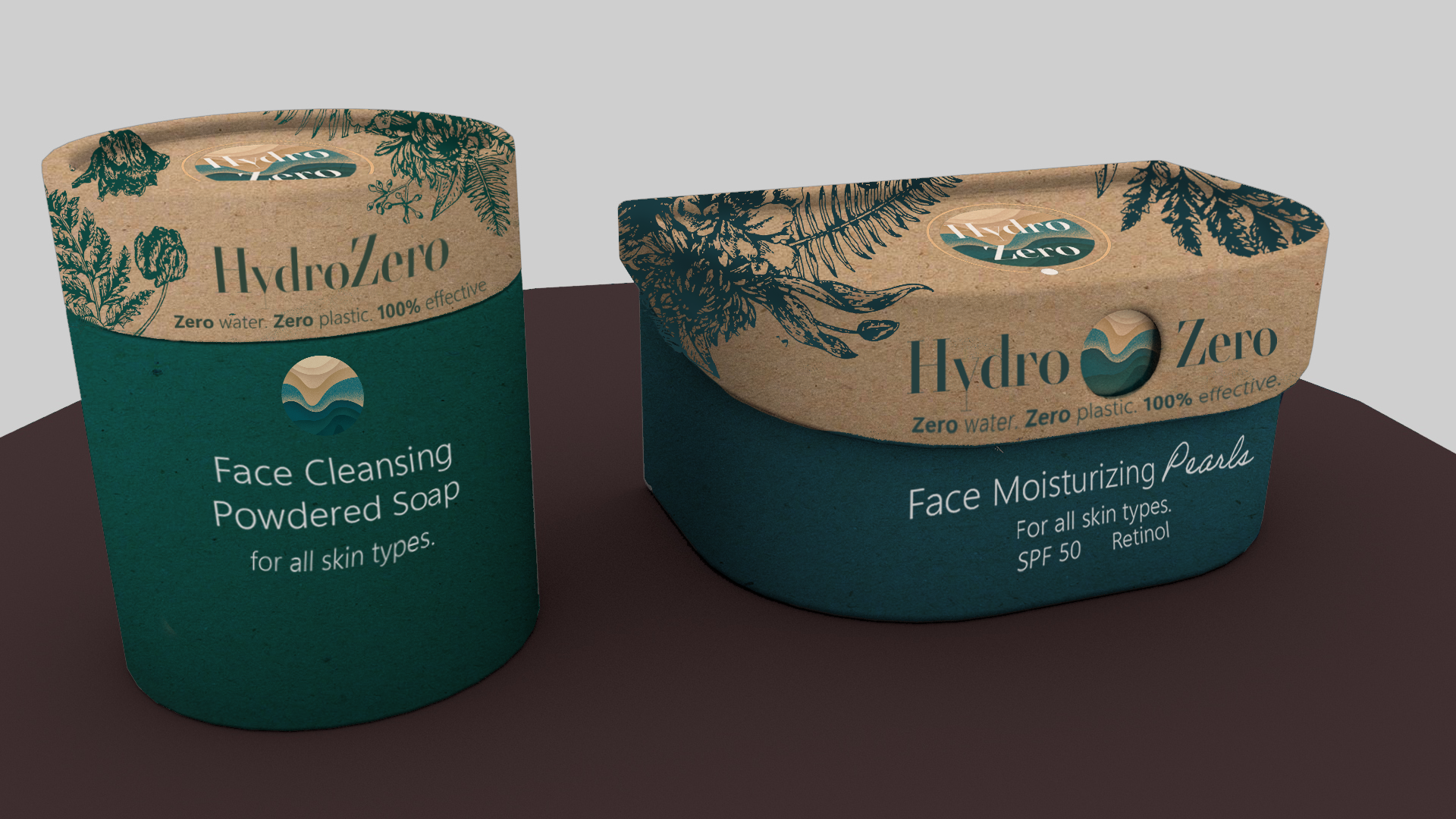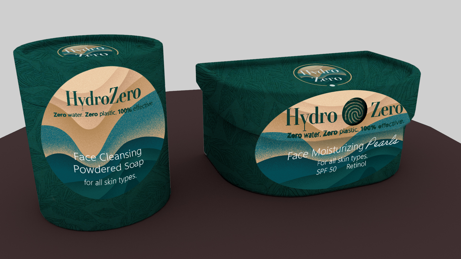 Discovering that “waterless” skin care products were becoming trendy, I had the idea of using waterless, dissolvable “pearls” for a face moisturizer. This way, a 100% plasticless packaging could be used, as well as having the bonus effect of a long lasting, concentrating product. For this reason I chose the name “HydroZero”.