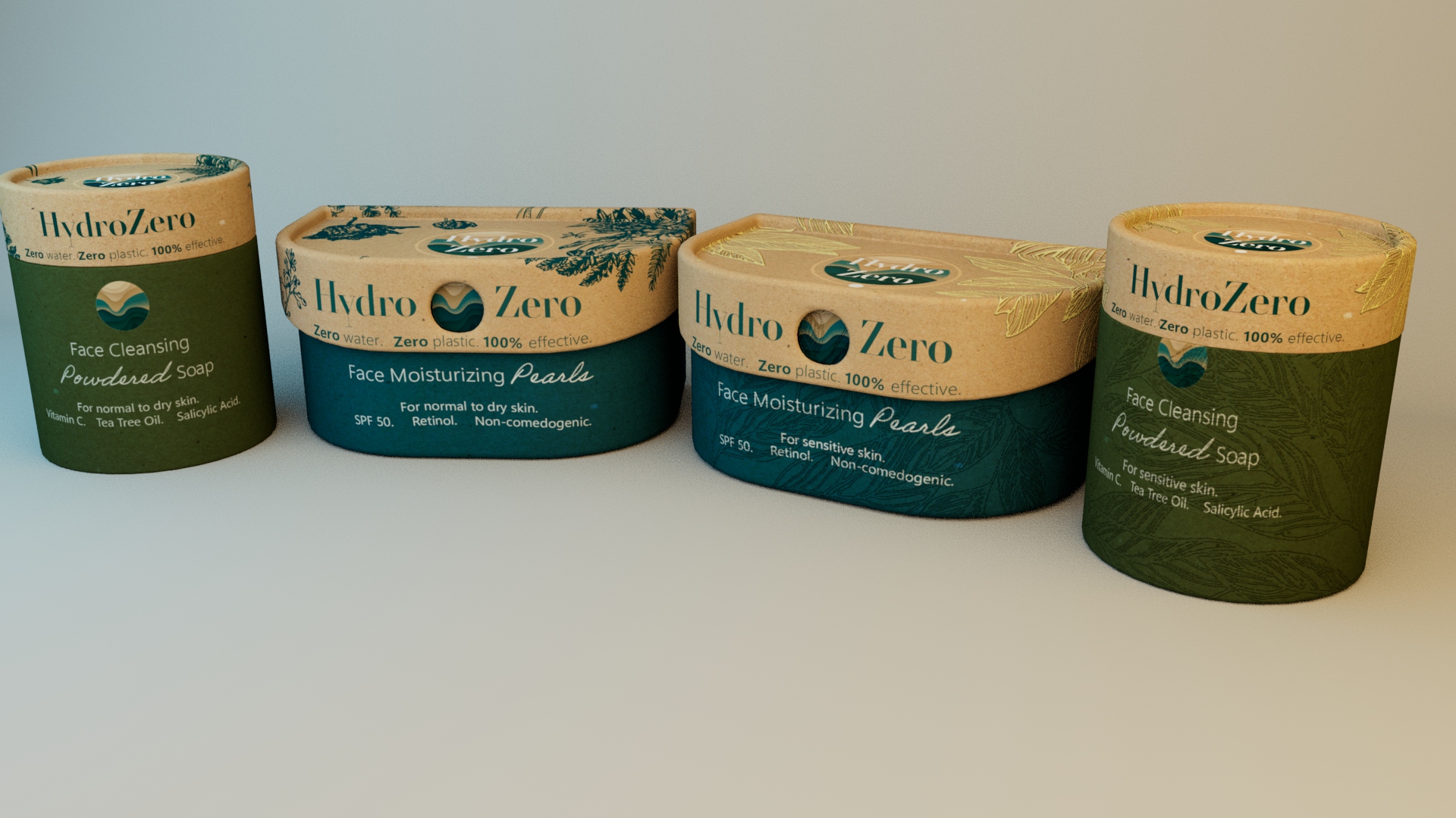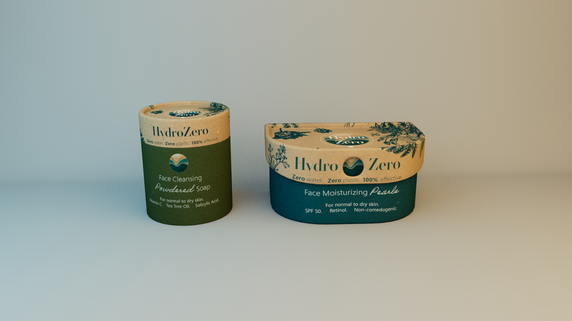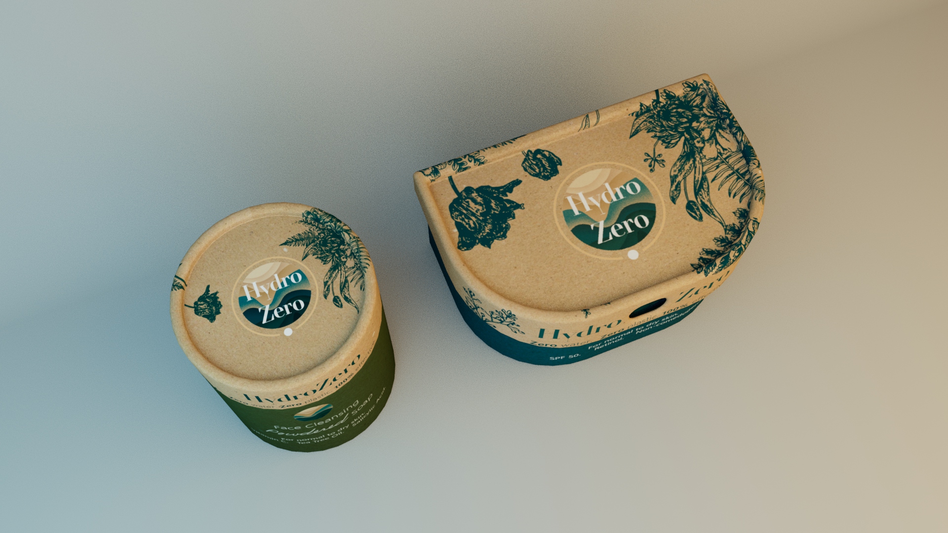 HydroZero is a personal project that investigates innovative product and package design, using audience & competitor research to create a fully sustainable skin care product with 3D models, dieline templates and more.