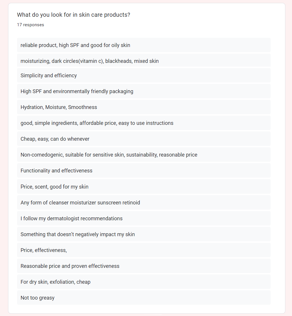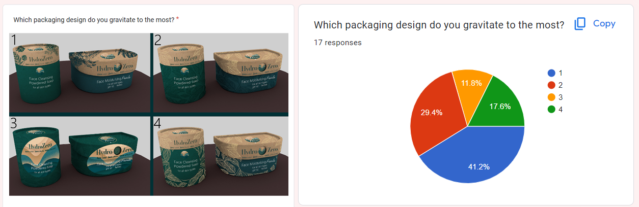 To ensure the most successful design is selected, I enquired on my market demographic through a survey. Through this, I discovered that young adults are alarmingly concerned with skin care and are most interested in products catering to their specific skin type. As my audience was very split on 2 packaging designs, I had the idea to use them both to create products for specific skin types, appealing to their needs and assuring a higher buy rate.