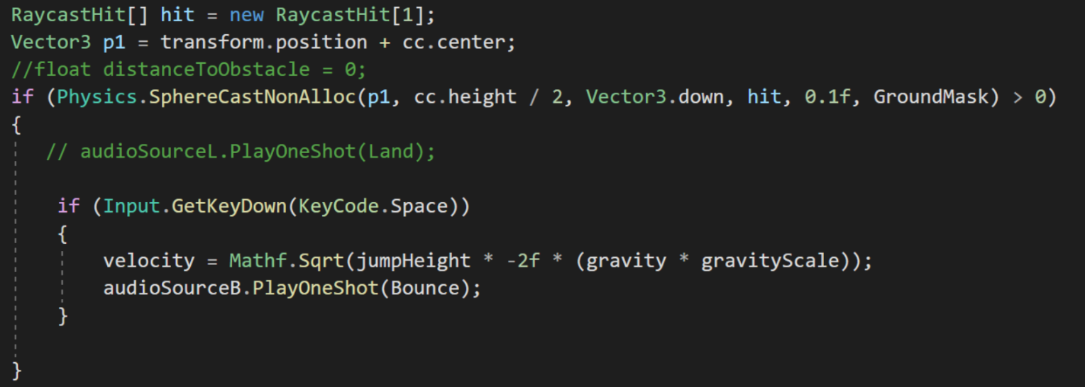 Fireboi’s movement was made using a character controller and raycasting. Unity’s Rigidbody “IsGrounded” check often causes unavoidable unwanted collisions, while raycasting’s collision system is a cheap alternative that offers more control and is far more reliable.