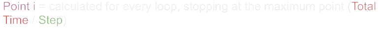For the ‘Point i’ variable, I created a loop that would generate each index, stopping at the maximum point: TotalTime/time between points (Aka, ‘Step’).