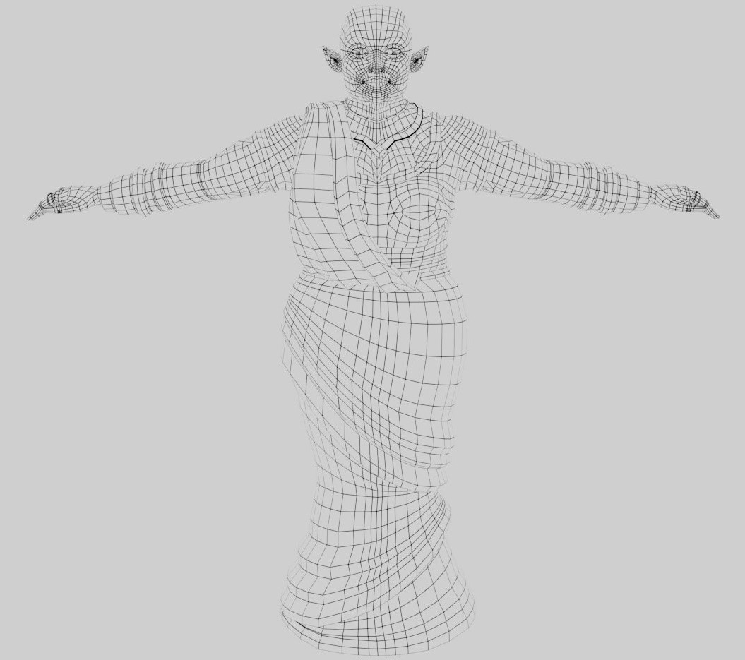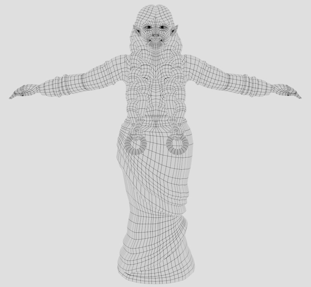 Zia’s model features dynamic topology. For instance, her face segments following a direction akin to that of facial muscles, or several circular segments on her knuckles, elbows, shoulders etc. These will allow for more realistic skin bending when animated.