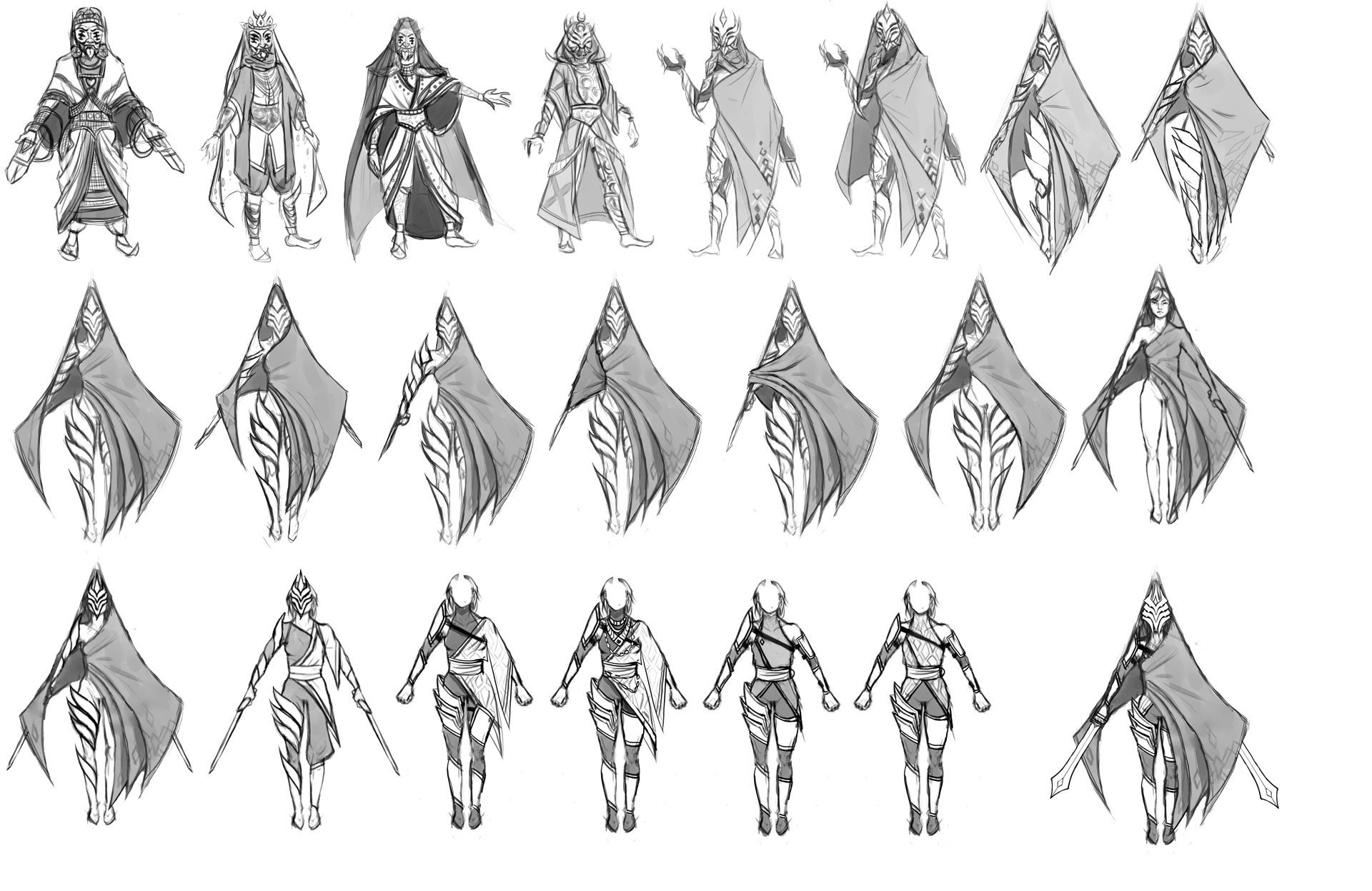 The images on the left are concept sketches created for Chaaya’s appearance. Her style is mainly inspired from ancient Persian & Indian fashion. Each sketch focused on visually evidencing a specific attribute of chaaya’s character.