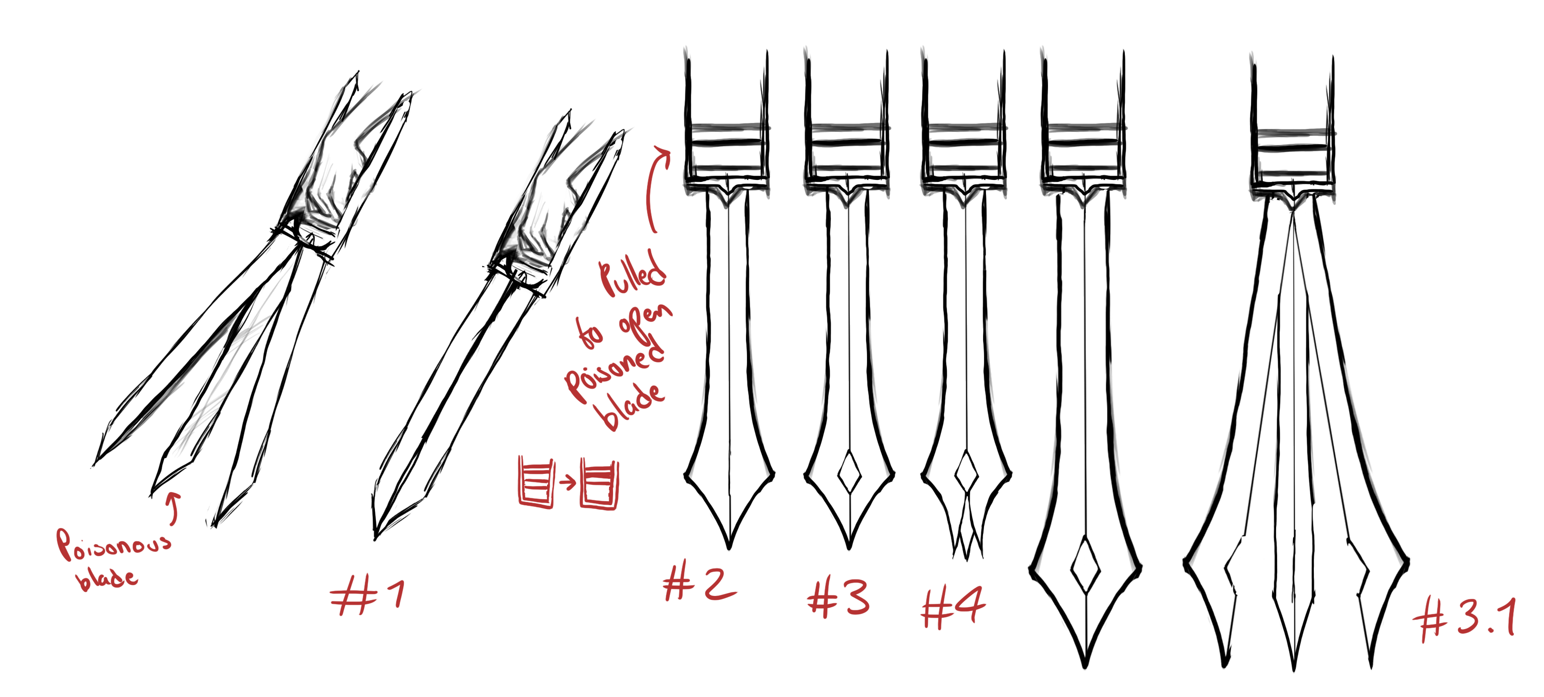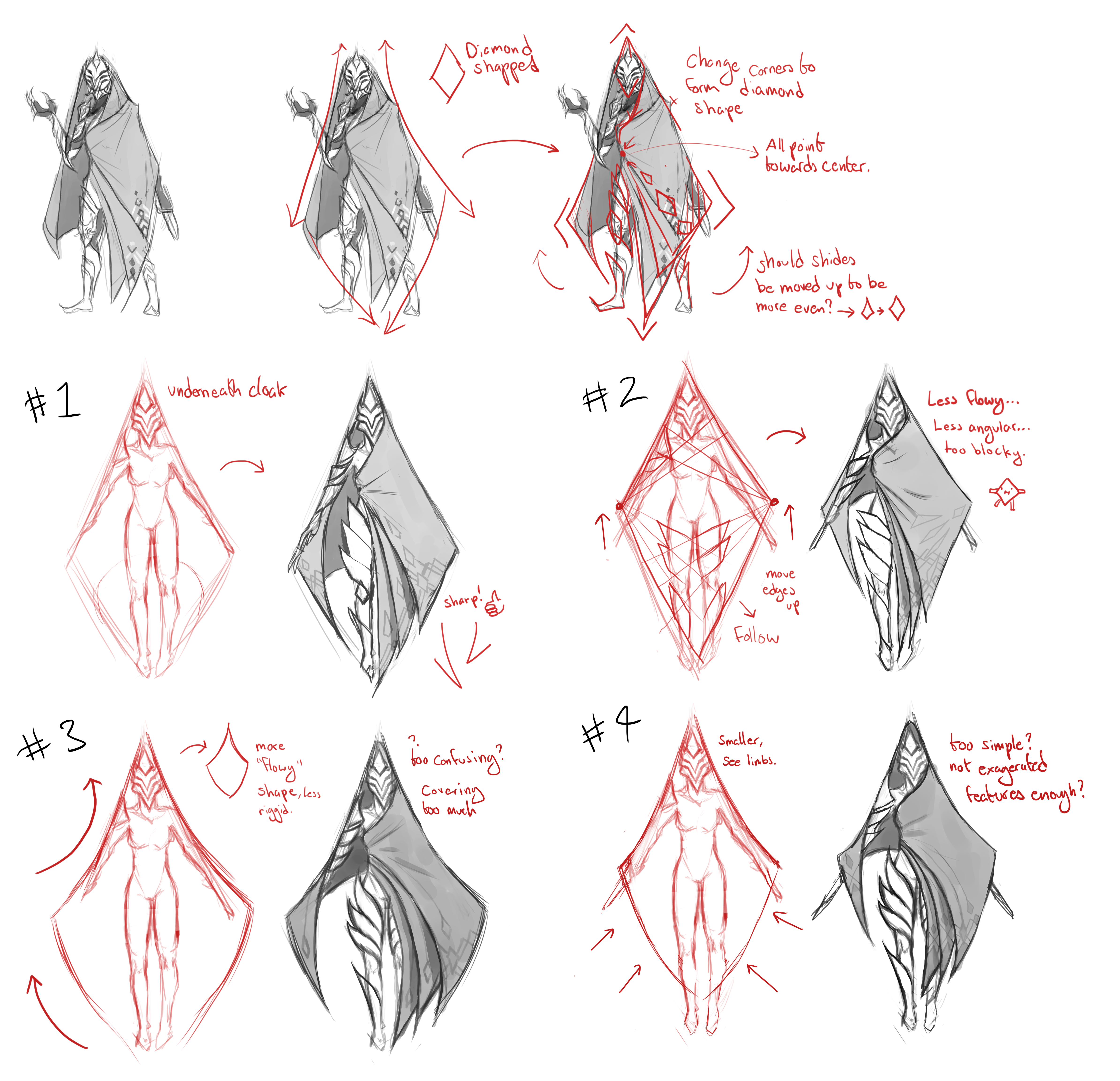 Finalising these designs helped me decide on a demonic/ spider-like appearance, which focuses on her desire to be feared and thus avoid confrontation.